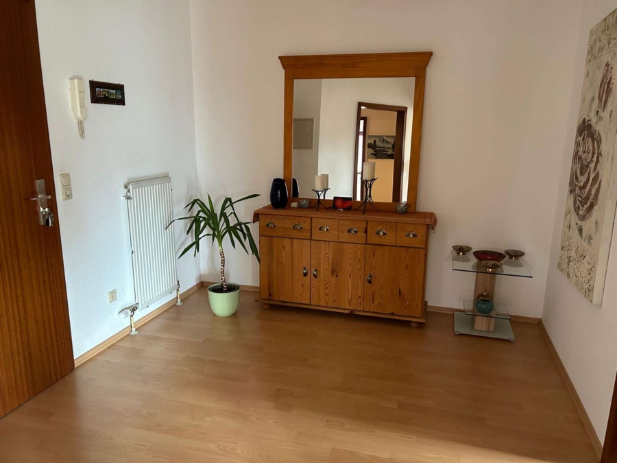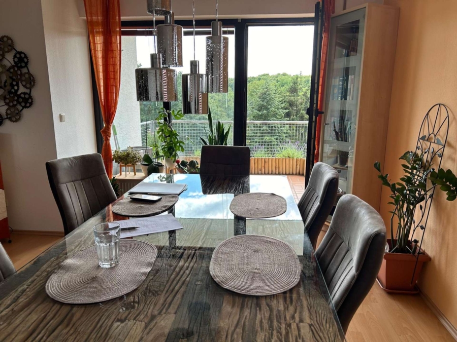 Die sehr gut geschnittene Wohnung ist mit einem hochwertigen Buchen-Laminatboden ausgestattet und bietet eine angenehme Wohnatmosphäre. Vom großzügigen Wohnzimmer aus gelangt man direkt auf den sonnigen Balkon, der mit einem traumhaften, unverbauten Fernblick überzeugt.