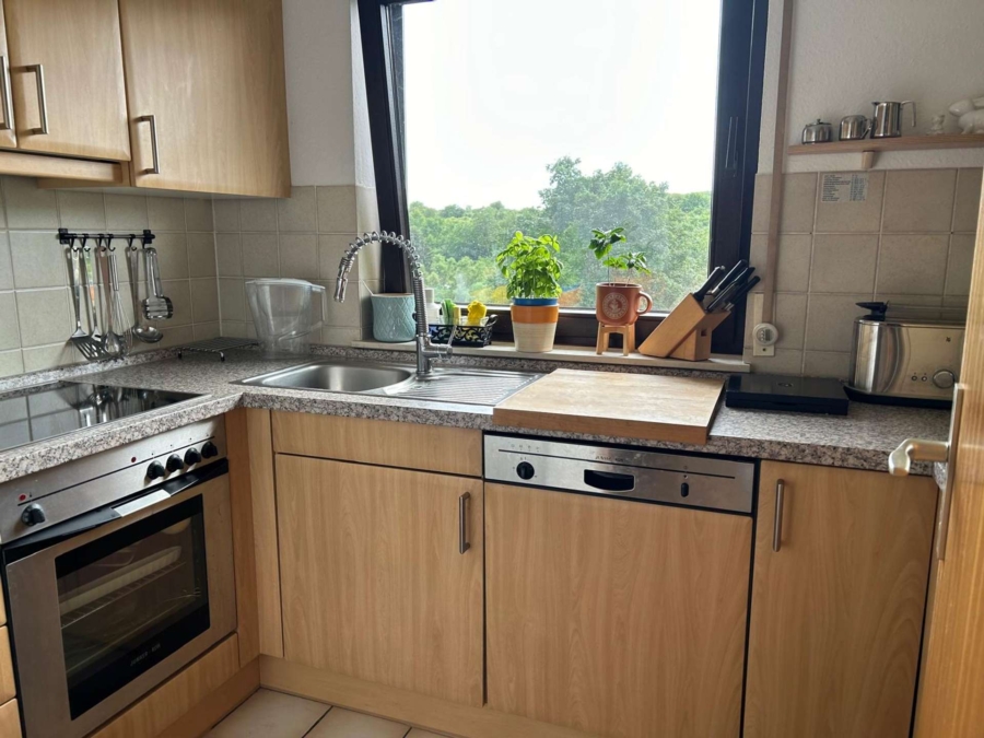 Die moderne Einbauküche verfügt über alle Elektrogeräte.